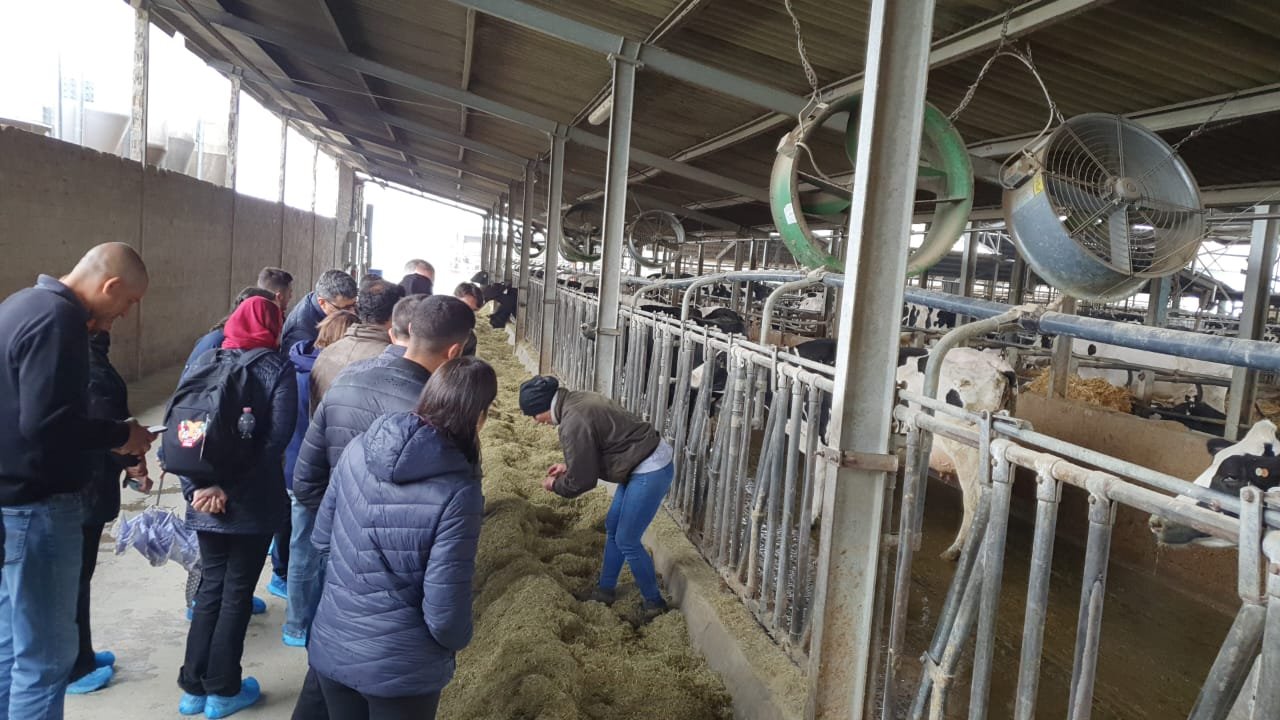 Visitamos a fazenda do laticínio, onde o grupo foi muito bem recebido. A fazenda conta com aproximadamente 750 vacas, sendo 350 em lactação e 400 em processo de fertilização, sendo produzidos de 6.000 a 7.000 litros de leite por dia. O rebanho é de vacas holandesas sendo que cada animal produz, em média, de 35 a 40 litros de leite por dia. A principal diferença quando falamos no trato ao animal cujo leite será destinado ao Parmigiano Reggiano se comparado ao leite Brasileiro é a dieta. Mistura-se cereais, feno e alfafa (que eles chamam de “erva médica”): este seria, de acordo com eles, o grande segredo do queijo para agregar sabor e manter a qualidade pelo longo tempo de maturação.