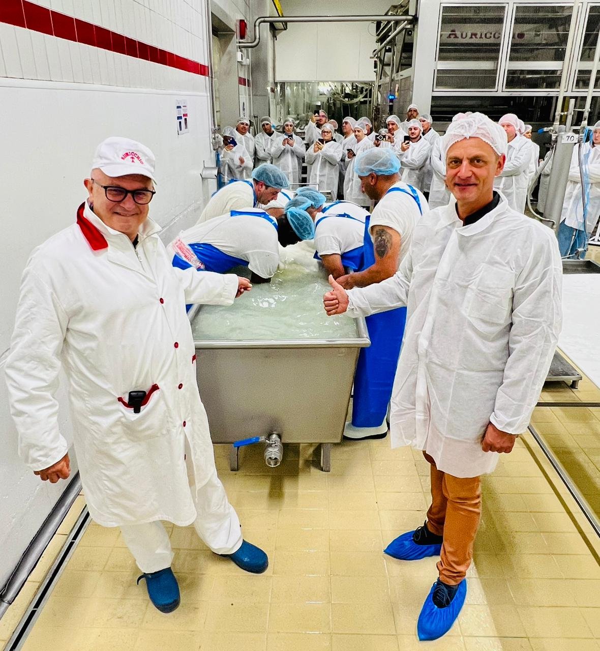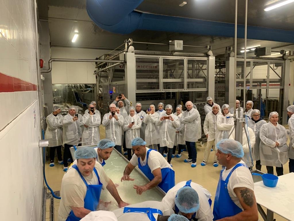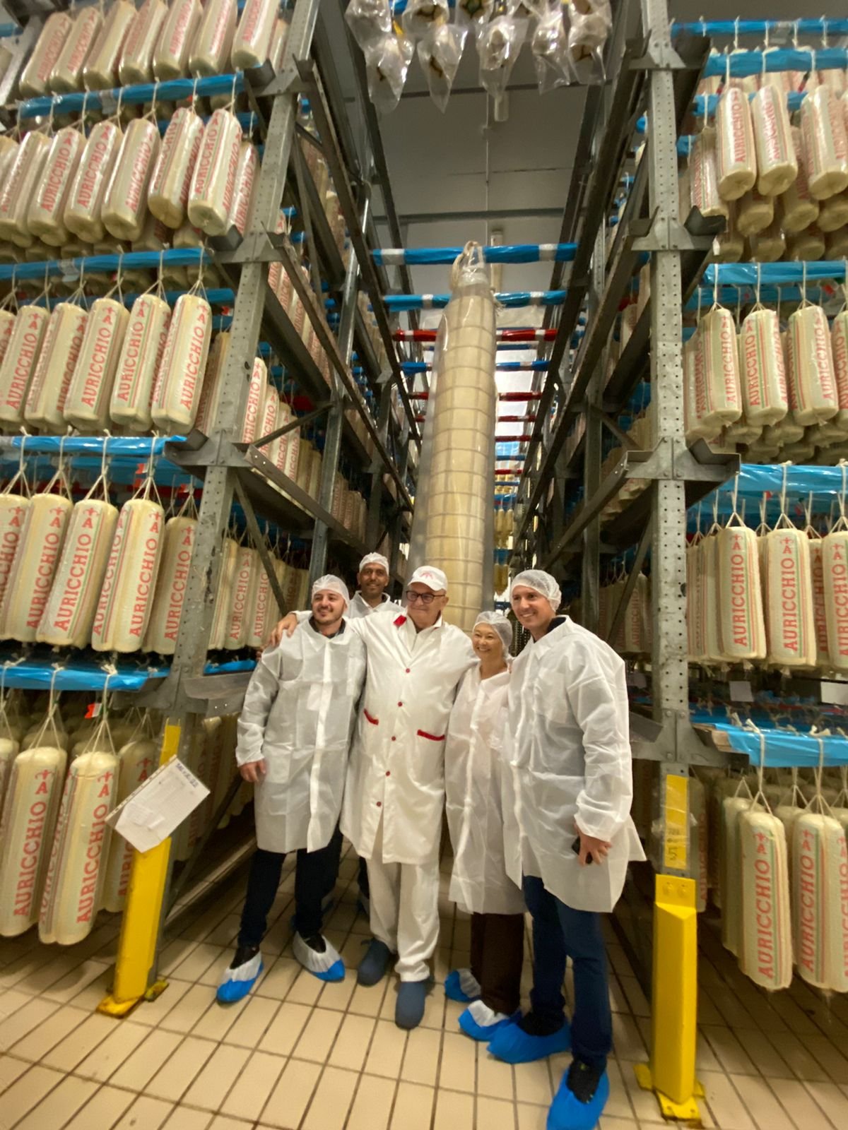 O grupo foi recebido pelo Sr. António Auricchio, que além de proprietário é presidente do consórcio do queijo Gorgonzola D.O.P na Itália. A planta processa 200.000 litros/dia transformando toda a produção em provolone picante e doce. A diferença desses queijos está principalmente no sabor: o picante tem o sabor mais pronunciado e é maturado de 6 a 12 meses. Já o provolone Dolce ou doce tem tempo de maturação menor: dois meses.