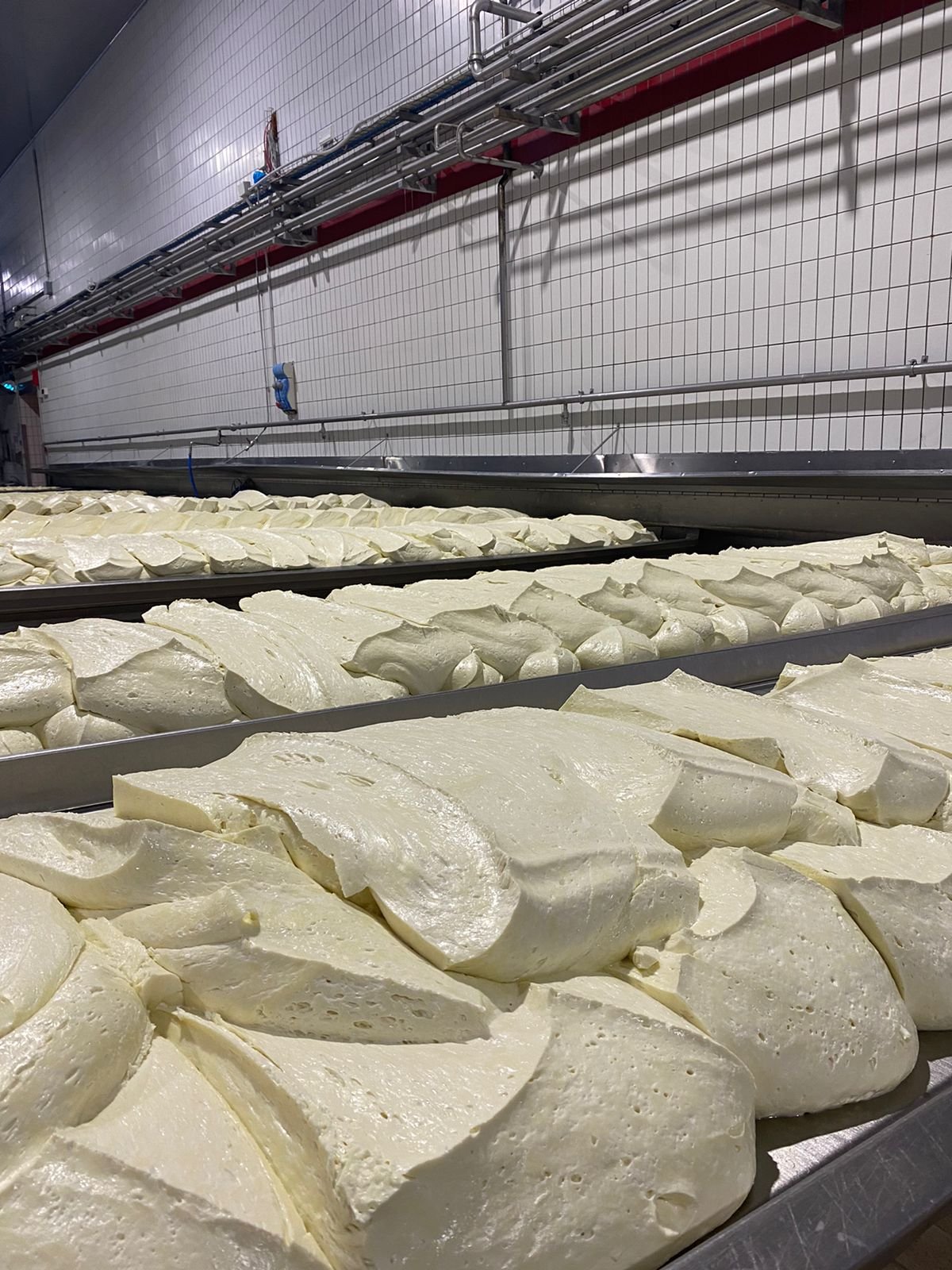 Neste dia fomos privilegiados com a produção de uma de suas maiores peças, realizadas poucas vezes por ano, destinadas especialmente para clientes que promovem grandes eventos queijeiros: um provolone de mais de 450 kg. Sem poder errar durante seu processo de filagem e moldagem, é necessária uma equipe de aproximadamente sete homens para filar e moldar este queijo. É uma verdadeira festa no final da enformagem.